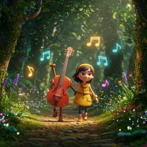 El camino hacia el bosque estaba lleno de obstáculos: un puente que solo se abría al ritmo correcto, piedras que cambiaban de color según la nota tocada, y pájaros que solo dejaban pasar a quienes cantaban afinados.